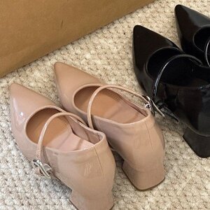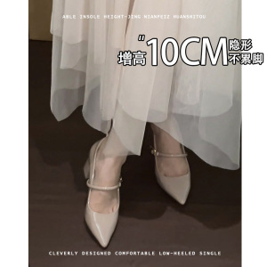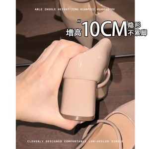 不累脚!法式内增高10CM粗跟单鞋2025裸色高跟鞋浅口玛丽珍单鞋女
