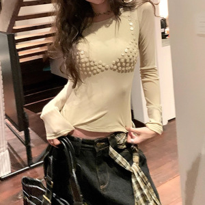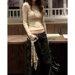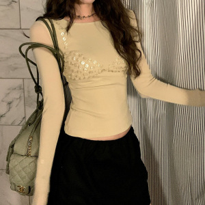 法式简约长袖圆领T恤女洋气修身短款上衣内搭打底衫 2025秋季新款