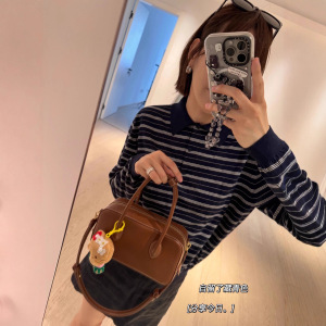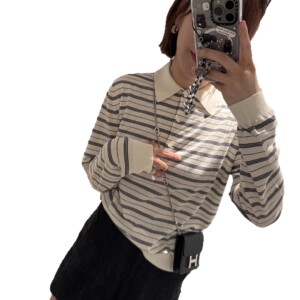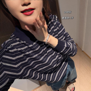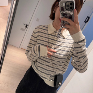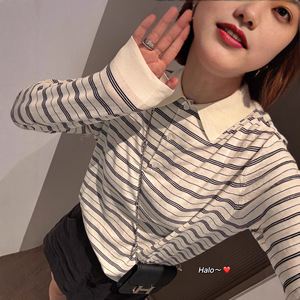 早秋大爆款!新款miu系既视感巨耐看条纹翻领针织polo衫上衣女潮