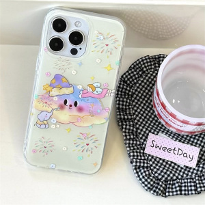 卡通黄底彩色云朵大象苹果16promax手机壳适用15pro双层14promax