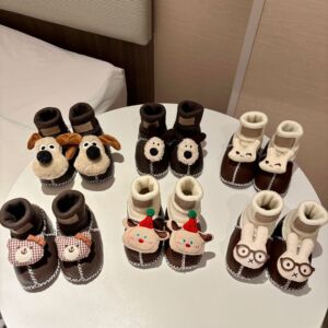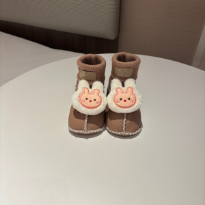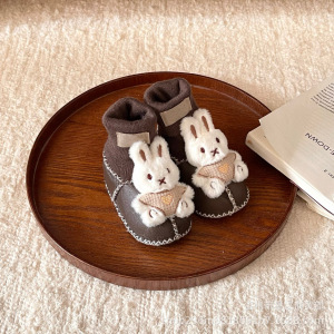 桑坡婴儿棉鞋羊皮毛一体步前鞋袜ins卡通男女宝宝软底毛毛鞋秋冬