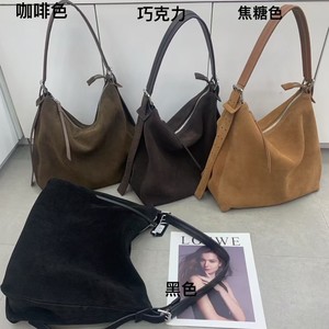 韩版复古秋冬新款磨砂绒面牛皮单肩腋下包慵懒大容量斜挎包包女