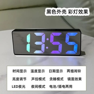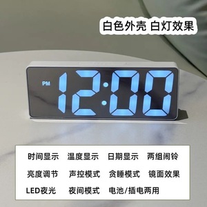 简约大数字电子时钟客厅电视柜台钟夜光静音闹钟表万年历温度
