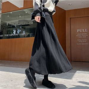 黑色半身裙秋冬裙子女2025新款垂感中长款毛线裙a字长裙针织伞裙