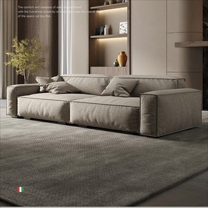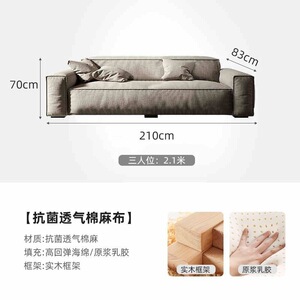 日式侘寂风棉麻布艺沙发组合客厅直排三四人位意式极简亚麻豆腐块