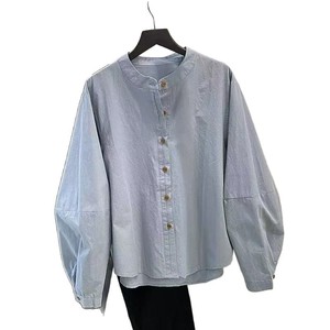 高级感圆领白衬衫女宽松2025新款韩版休闲灯笼袖叠穿显瘦衬衣女