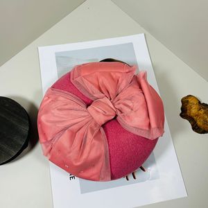 日本CA4LA款钉珠蝴蝶结装饰澳洲羊毛贝雷帽女大头围显脸小画家帽