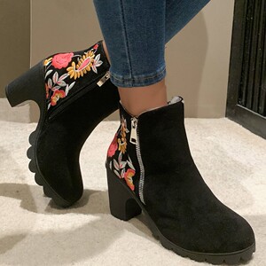 2025秋季新款欧美侧拉链绣花马丁靴厂家直销外贸跨境女单里棉里靴