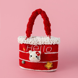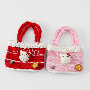 新年小女生日韩系编织成品包凯蒂猫手提包手腕毛线包卡通动物包