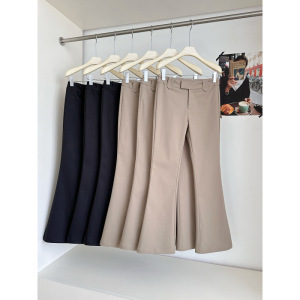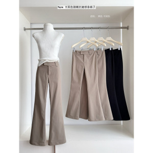 2025低腰修身显瘦微喇休闲裤垂感秋季复古松紧腰系带直筒裤女