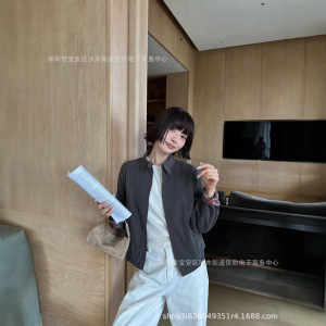 25秋季老钱风小马刺绣印花拼接美式POLO翻领外套女老干部夹克女