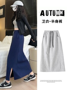 半身裙女春秋冬季新款高腰包臀一步A字裙直筒卫裙百搭开叉长裙子
