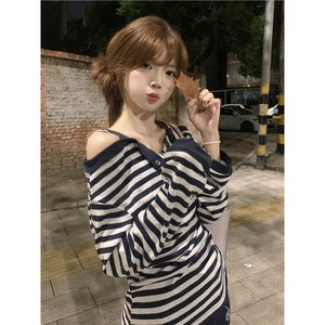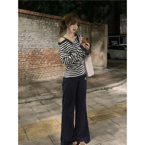 藏蓝色-【纯欲一字肩】韩系温柔风