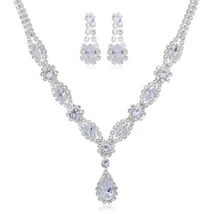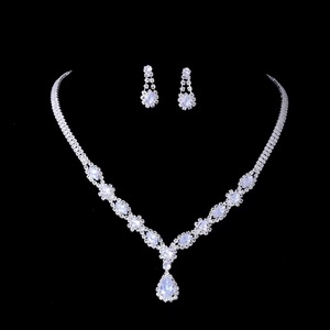 时尚首饰套装女士水钻锆石璀璨项链耳环水滴形轻奢优雅饰品