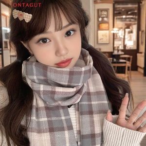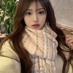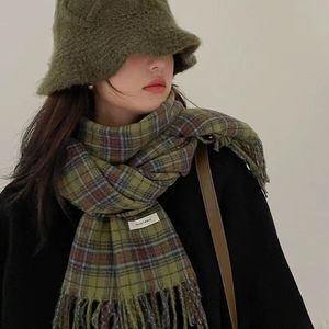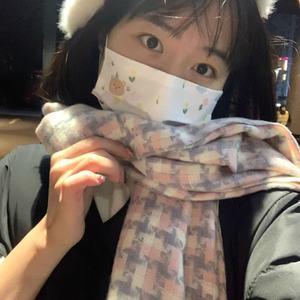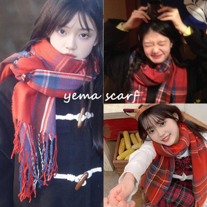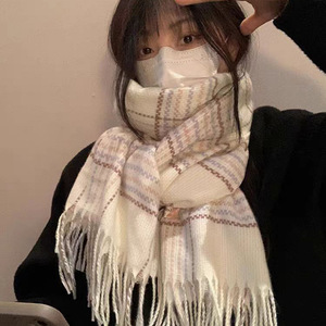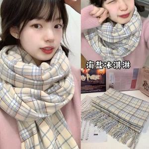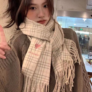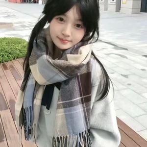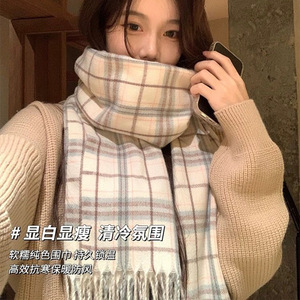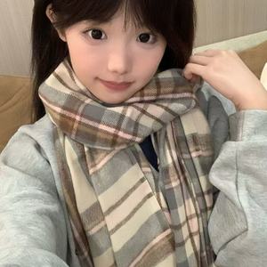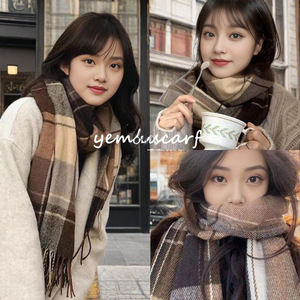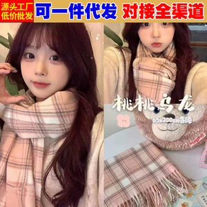 一件代发复古格子围巾女冬季仿羊绒围脖女学生日礼物冬天流苏百搭