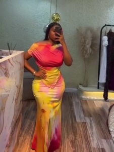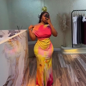欧美跨境女装2025秋季新款一字领不规则印花上衣收腰修身裙两件套