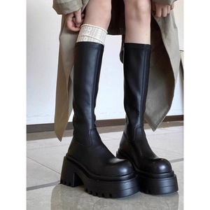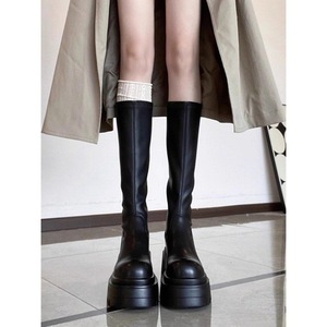 黑色长筒靴女2025新款春秋冬厚底不过膝高筒骑士靴小个子长靴子女