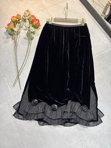 25秋款篙端真丝丝绒套装手工篙定玫瑰花上衣+半裙气质减龄两件套
