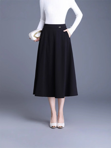 垂坠感a字裙半身裙女秋款2025新款高腰中长口袋裙子遮胯显瘦伞裙