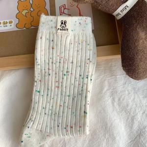 暖秋棕色系袜子女韩版中筒点子纱云朵兔兔学院风ins可爱百搭卡通