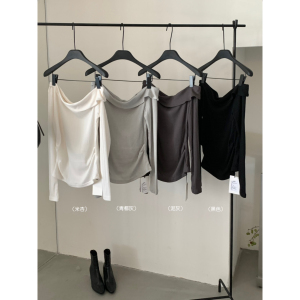 MISS密思家-早秋韩系简约小坑条百搭显瘦减龄斜肩长袖T恤女89012