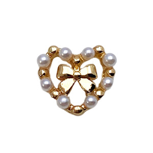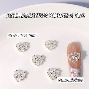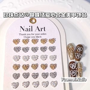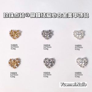 网红日系风珍珠蝴蝶结爱心合金美甲饰品超闪满钻爱心桃心指甲配饰