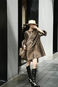 南油批发2025年秋季新款 真丝织锦荷叶袖连衣裙 文艺复古时尚优雅