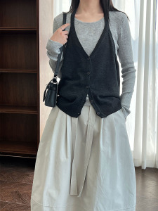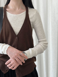 NS 韩系慵懒感圆领打底·叠穿挂脖背心女秋季新款简约套装ss793