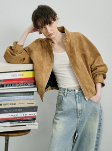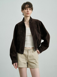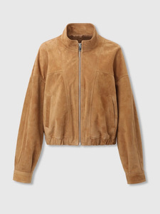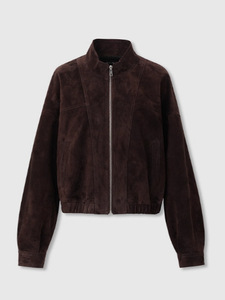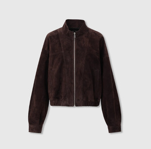 新款秋款进口高级反绒皮解构分割线立领小短款廓形夹克绒面外套女