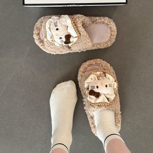 时尚卡通可爱卡通KT猫毛毛鞋女款2025秋冬新款外穿少女心一字拖鞋