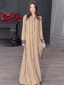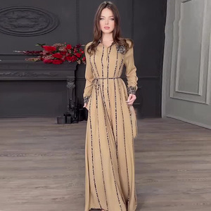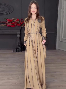 亚马逊2025欧美跨境秋季新款印花时尚宽松女装长袖织带宽松大摆裙