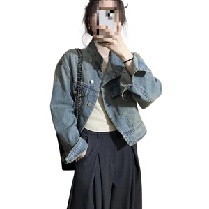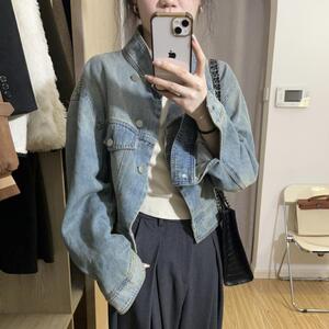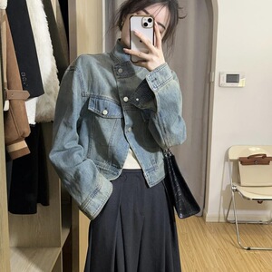 短款牛仔外套女春秋季百搭宽松小个子设计感小众盐系立领夹克上衣