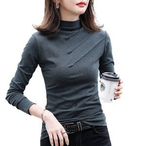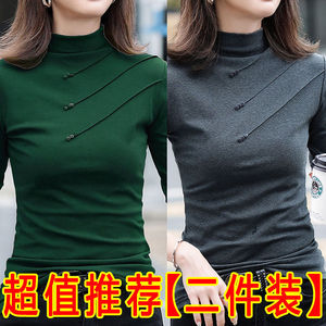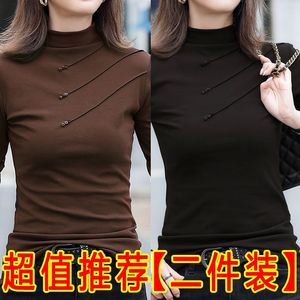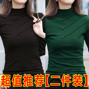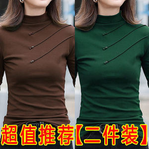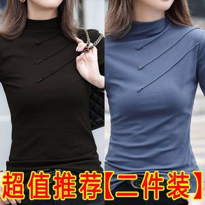 棉质打底衫女秋冬半高领长袖t恤2025新款春秋百搭紧身洋气内搭潮