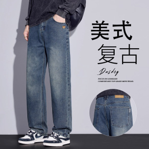 美式高街牛仔裤男士2025秋季新款宽松直筒潮牌复古水洗休闲长裤子