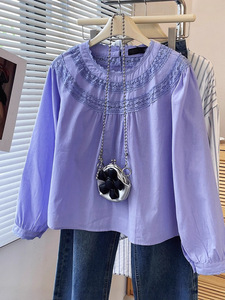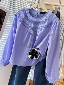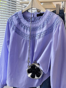 法式简约复古镂空木耳花边精致上衣2025年夏新款时尚气质紫色小衫