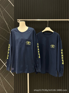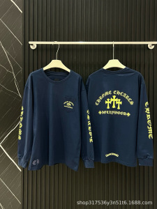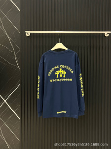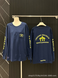 25早秋新款CH美式潮牌休闲十字印花宽松圆领长袖T恤