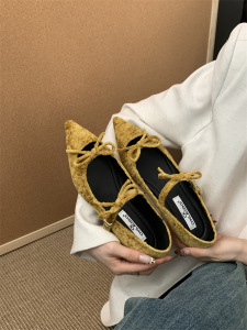 法式丝绒内增高玛丽珍鞋女2025新款仙女风温柔蝴蝶结镂空芭蕾瓢鞋