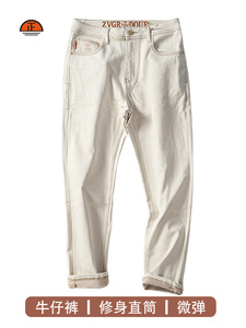 一件代发牛仔裤白金色男士牛仔裤修身小直筒微弹长裤通勤穿搭秋季