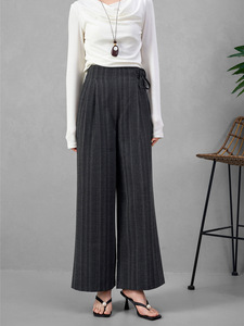 云长 新款条纹阔腿西装裤女生秋冬显瘦高腰长裤质感通勤裤子现货