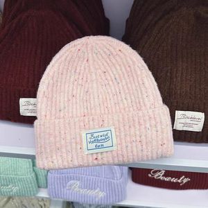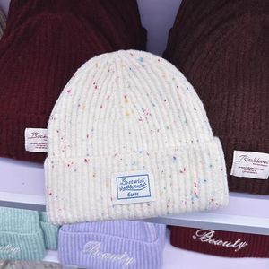 韩国代购东大门韩版ins彩点字母针织帽女大头围显脸小毛线帽