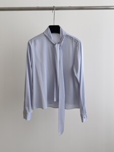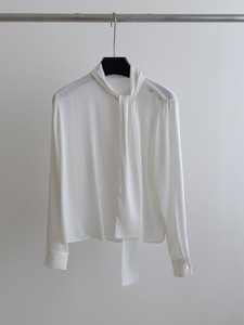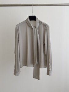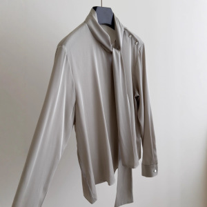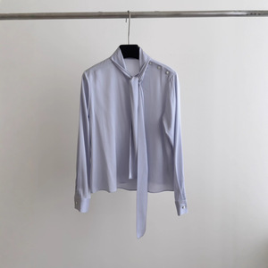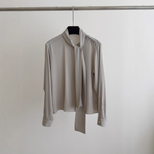 2025秋季新款简约时尚百搭飘带立领长袖系带设计纯色真丝衬衣上衣
