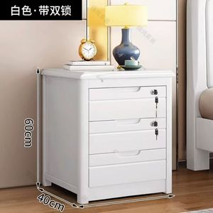 新中式橡胶木带锁三层整装床头柜实用收纳E1环保家用