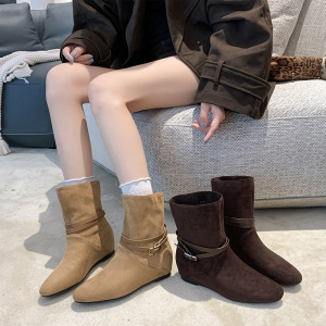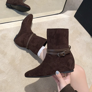 羊皮版时装靴女2025秋冬新款复古美拉德靴子西部户外内增高短靴子