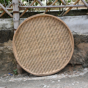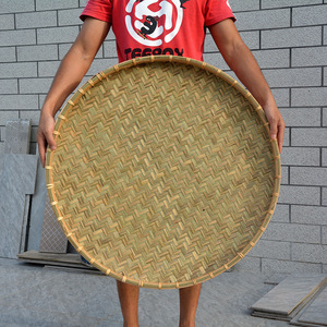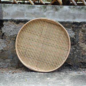 竹簸箕圆形干货晾晒筐盘米筛竹匾农家竹盘子手工竹制品竹青竹筛子