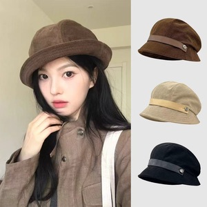 灯芯绒渔夫帽女2025新款韩版百搭一帽多戴大头围大脸显脸小渔夫帽