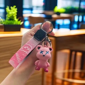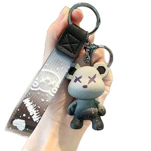 跨境卡通酷渐变暴力熊公仔钥匙扣情侣包包挂件汽车配饰外贸批发