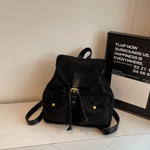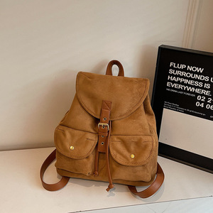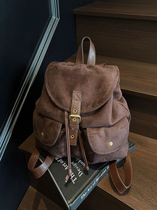 通勤复古麂皮绒女式双肩包2025新款潮休闲百搭后背包出游旅行书包