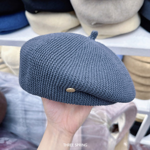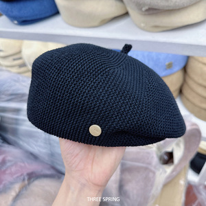 批发韩国2025年新款简约纯色纽扣贝雷帽女英伦大头围显脸小画家帽