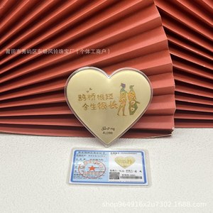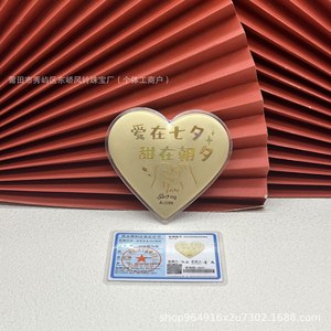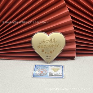 爱在七夕52mg爱心大饼金片足金999七夕情人节礼物水贝黄金批发