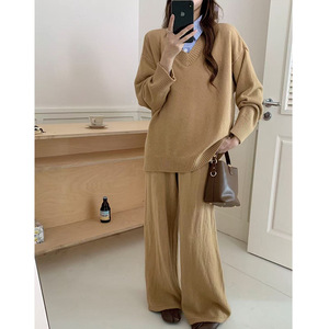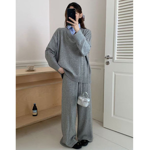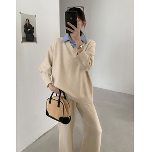 洋气衬衫领运动套装女秋冬2025新款时尚宽松毛衣针织阔腿裤两件套